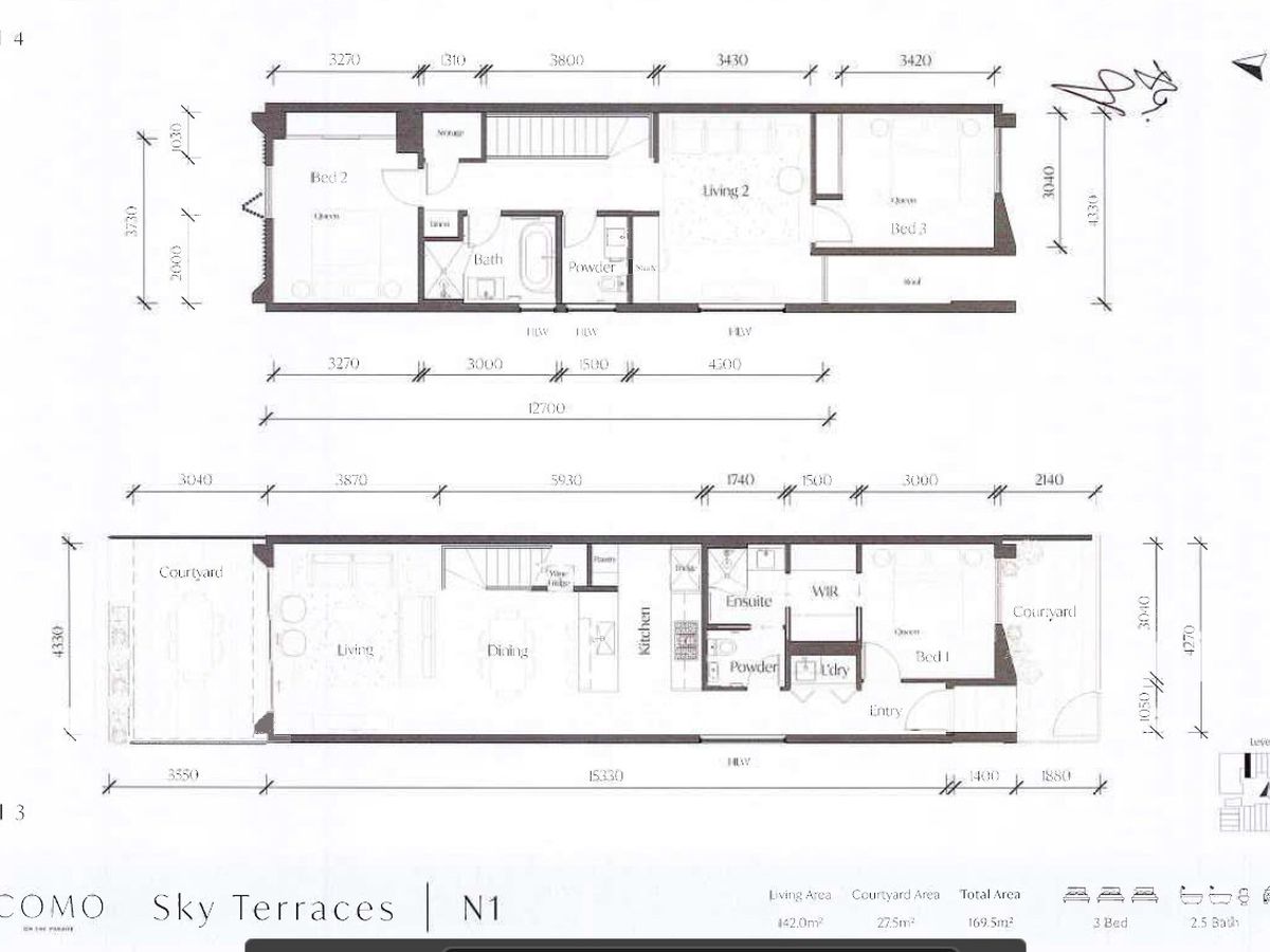 Yes, it’s one of the bigger and better ones with 3 bedrooms, 2 beautiful bathrooms and 2 carparks. It’s a two storey townhouse with living areas and bathrooms on both levels.
