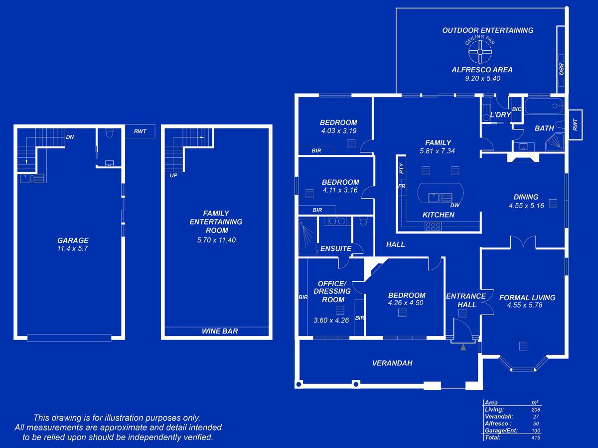 -Family Room overlooking the spectacular Rear Garden and Covered Outdoor Entertaining area (boasting Outdoor Kitchen and Barbeque) with pull down blinds which converts to an Outdoor “Room”